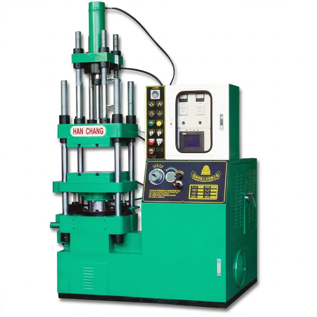 立式壓縮模具結構:節省空間,適用多樣化熱固性產品的壓製與包覆加工。
